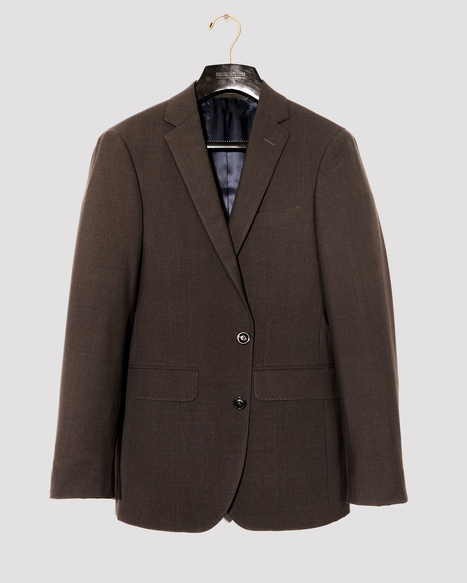 This fabric is exciting for a multitude of reasons: the fabric itself is incredibly high quality with a weight and texture work beautifully year-round, but the color is really something special. It's a gorgeous melding of all warm tones—deep chocolate brown, charcoal gray, with tonal heathering in lighter mocha and even hints of ochre. This suit, while unexpected, will look beautiful as it catches the low, golden sunlight of an autumn afternoon or even the harsh sun of a midday summer wedding.