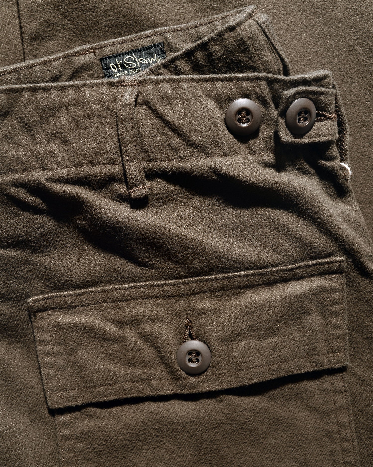 About OrSlow: The name OrSlow refers to designer Ichiro Nakatsu's philosophy of crafting clothes with consideration, in contrast to the culture of fast fashion and society itself. Each piece is made in Japan using vintage machinery and locally sourced materials.